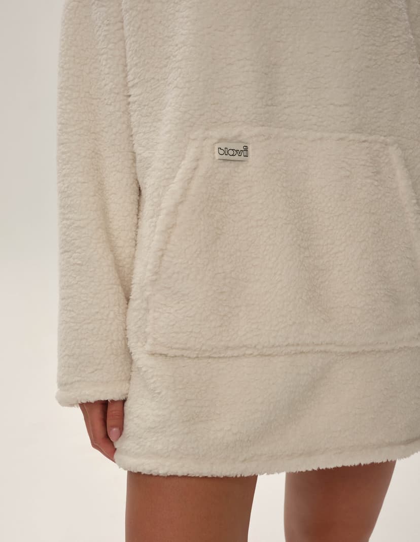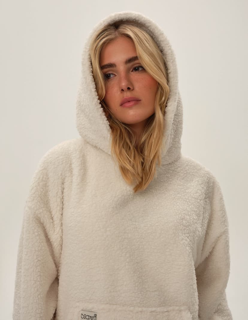 Білий світшот з пухнастої тканини - ідеальний вибір для холодних зимових днів, коли так хочеться тепла та затишку. Цей світшот з широким капюшоном забезпечить вам максимальний комфорт, захищаючи від вітру та холоду. М'який та надзвичайно теплий матеріал робить його чудовим супутником для довгих осінніх і зимових вечорів. Світшот має вільний крій з боковими розрізами, що надає свободу руху і стильний вигляд. Завершує образ декоративний штрих - етикетка з назвою бренду на верхній кишені, яка додає виробу вишуканості.